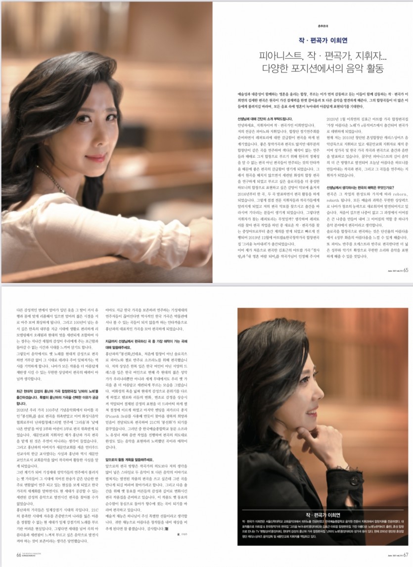 작.편곡가 이희연님의 인터뷰가 음악춘추 6월호에 실렸습니다~~